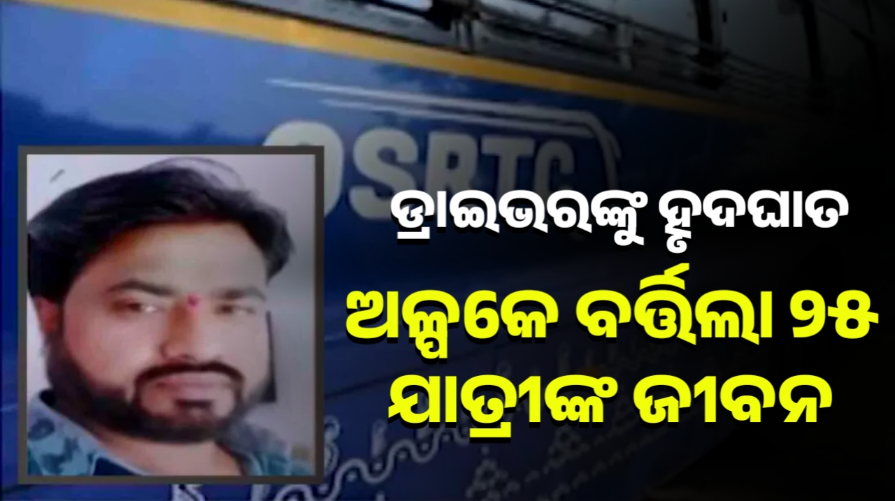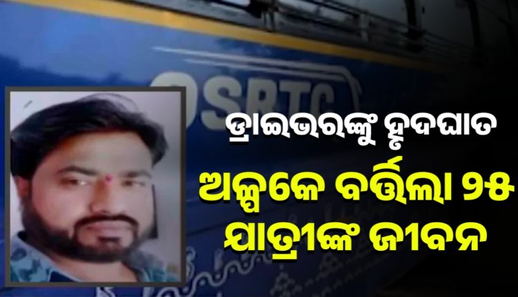 ଚଳନ୍ତା ବସରେ ଡ୍ରାଇଭରଙ୍କୁ ହୃଦଘାତ, ଅଳ୍ପକେ ବର୍ତ୍ତିଲା ୨୫ ଯାତ୍ରୀଙ୍କ ଜୀବନ