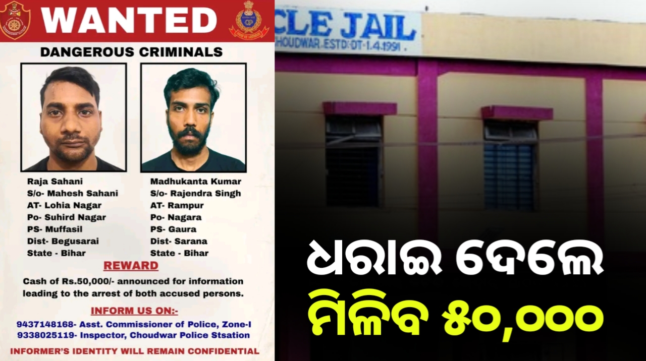 ଦୁଇ ଜଣ ଦୁର୍ଦ୍ଦାନ୍ତ ଅପରାଧୀଙ୍କ ସଂପର୍କରେ ସୂଚନା ଦେଲେ ସୂଚନାଦାତାଙ୍କୁ ୫୦ ହଜାର ଟଙ୍କା ପୁରସ୍କାର