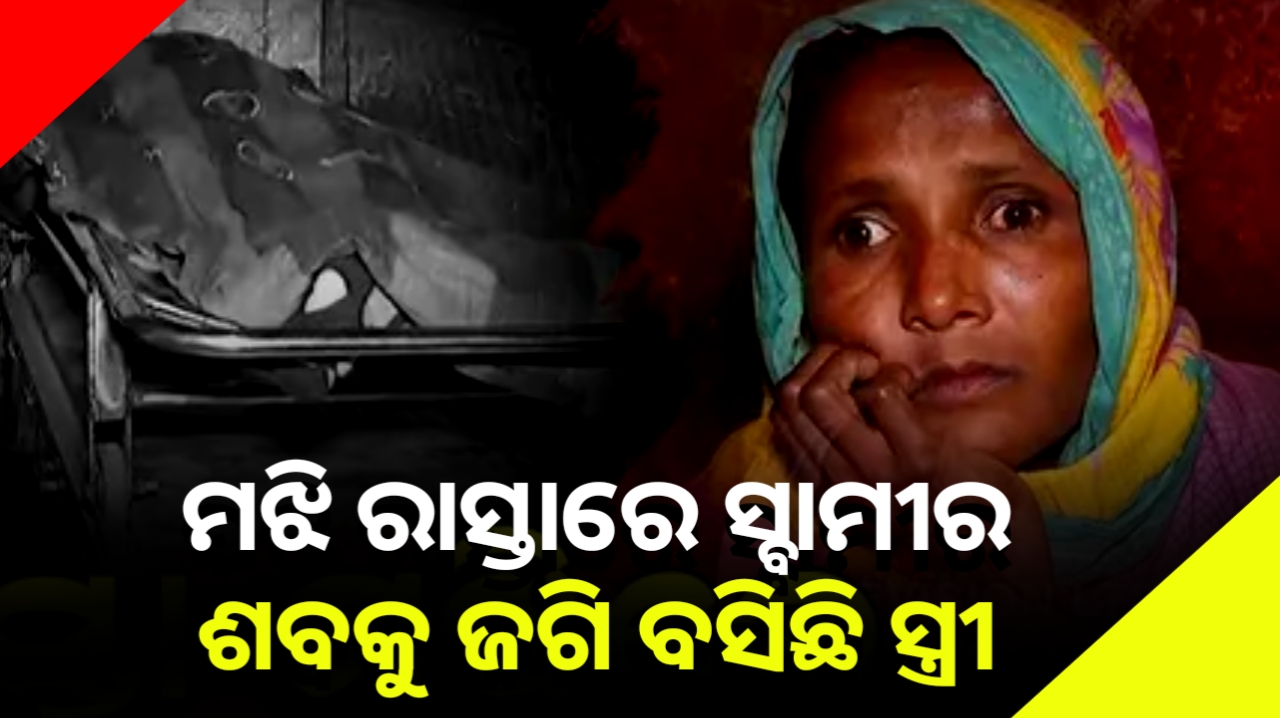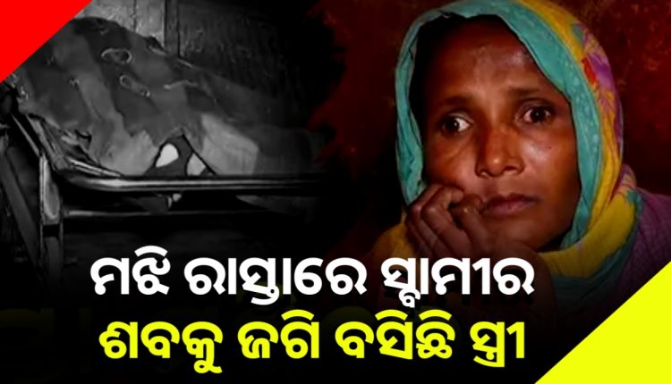 ମୁଣ୍ଡ ପିଟି ପିଟି କାନ୍ଦୁଛି ସ୍ତ୍ରୀ।ମଝି ରାସ୍ତାରେ ସ୍ବାମୀର ଶବକୁ ଜଗି ବସିଛି ସ୍ତ୍ରୀ